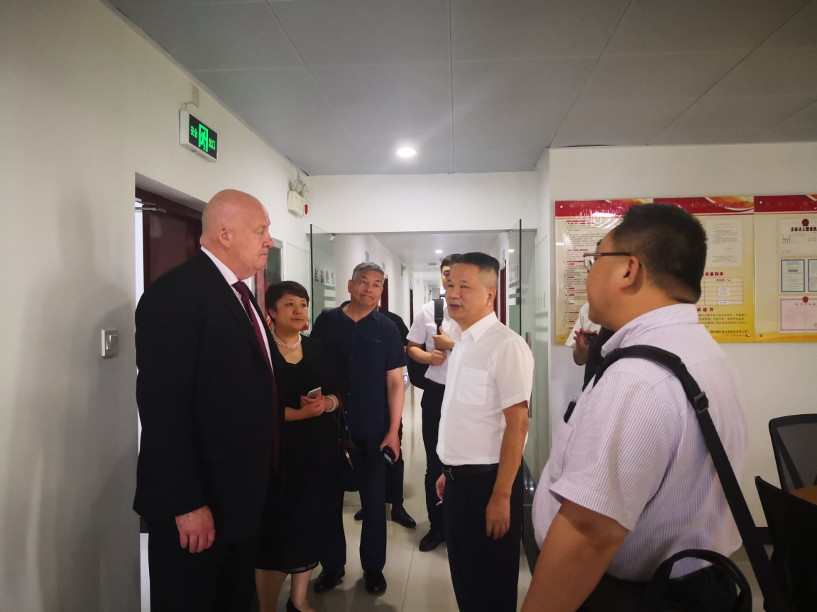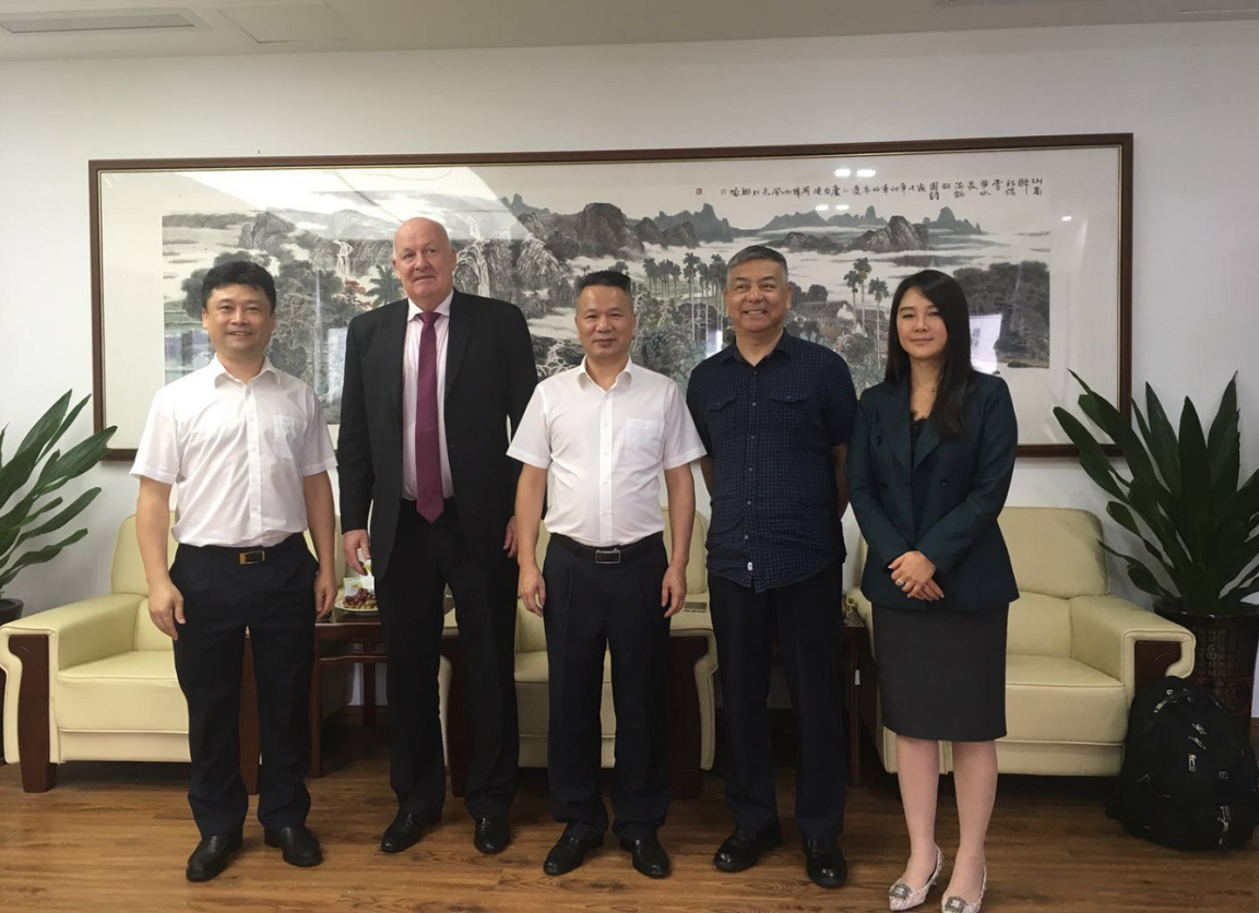 海口必赢242net官网王治平董事长率许海果总经理等公司管理人员,陪同到访的中国通用咨询栗冀董事长、美驰澳大利亚有限公司(Moelis Australia)资产管理部雷艾伦(Alan Reid )董事总经理 、澳大利亚中国商务和贸易促进协会会长吴威濂等一行12人参观了公司办公场所,并进行了充分深入的沟通和交流。