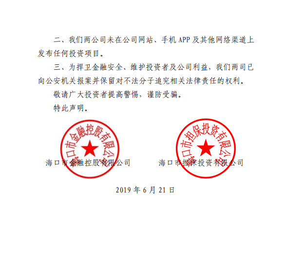 海口市金融控股有限公司2019年6月及上半年度财务信息披露