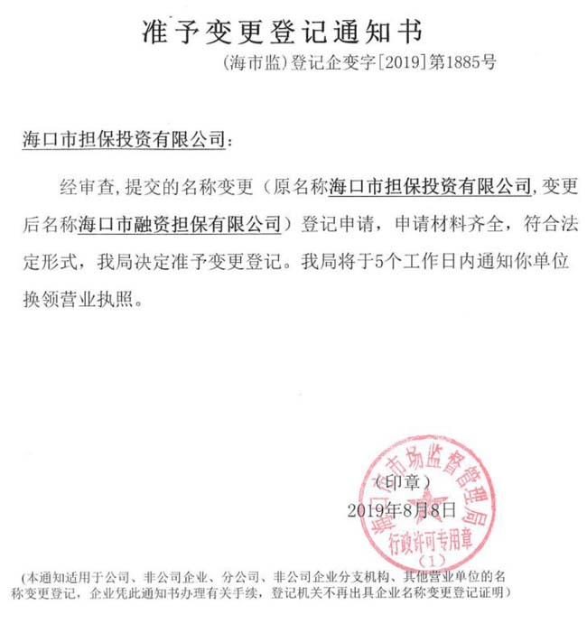 关于海口担保公司名称变更的公告