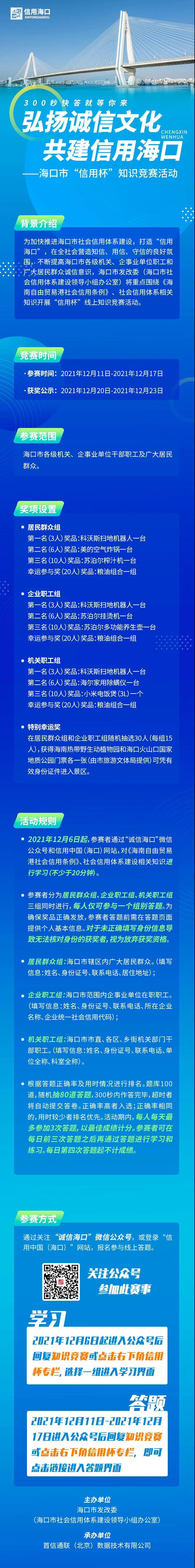 海口市“信用杯”线上知识竞赛答题通道今日开启,快来答题吧!