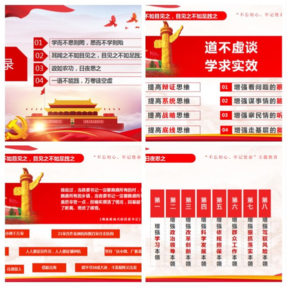 党课内容结合了习近平总书记在文章中、调研中、讲话中引用的《论语》《说苑·政理》《左传》和《饮酒》等古籍名著中的经典诗词,分为了“学而不思则罔,思而不学则殆”、“耳闻之不如目见之,目见之不如足践之”、“政如农功,日夜思之”和“一语不能践,万卷徒空虚”四个部分,在引经据典的同时,深入学习了习近平总书记新时代中国特色社会主义思想,确保学习方向、意识形态紧跟中央、省、市、市国资委的脚步。