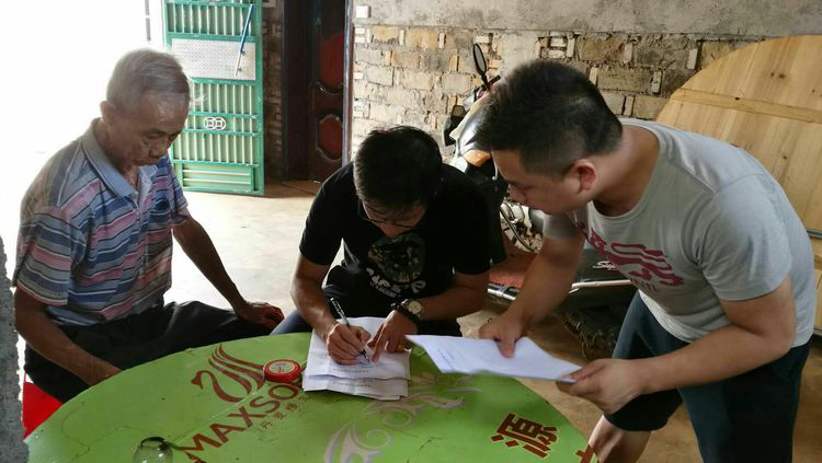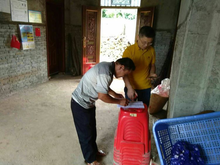 2018年8月21日上午,海口担保扶贫小组一行三人在党群办主任邱英岛带领下,前往三门坡镇清泉村对谭昌、中涌、文曲三个村落进行“扶贫攻坚”,并对所负责的10户脱贫户进行了家访及补充“扶贫档案”资料。