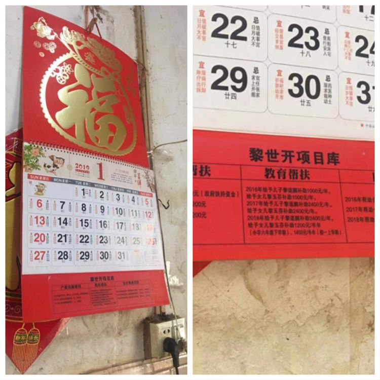 (贫困户家中挂上了帮扶责任人为他们特制的挂历)
