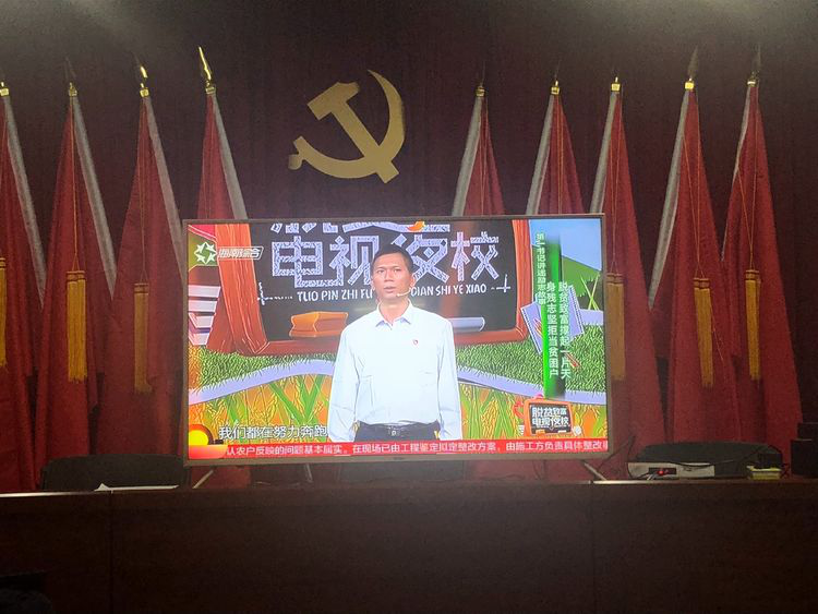 2019年1月7日,市必赢242net官网公司帮扶责任人在继续值守迎检工作后,在三门坡镇清泉村委会同村干部、贫困群众一同观看116期《脱贫致富电视夜校》。